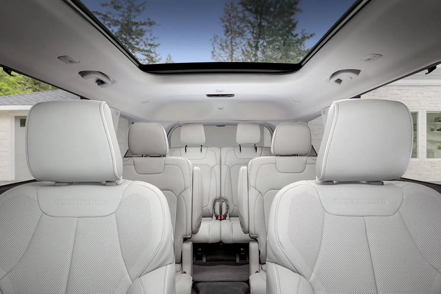 Không gian nội thất Jeep Cherokee rộng rãi với kết cấu 3 hàng ghế cùng tùy chọn 6 hoặc 7 chỗ ngồi. Toàn bộ ghế ngồi trên xe bọc da êm ái với khoảng để chân thoải mái. Trang bị đệm ngồi cỡ lớn có lớp lót hiện diện trên tất cả các ghế, mang đến sự thoải mái cho hành khách trên suốt cung đường di chuyển.